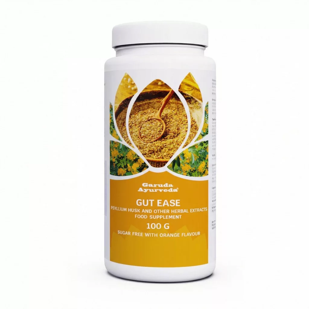 Indiai útifű maghéj (Psyllium Husk, Plantago ovata) őrlemény 3,7 g, Indiai cserzőgubacs (Terminalia chebula) 0,44 g, Édesgyökér (Glycyrrhiza glabra) 0,38 g, Gyömbér (Zingiber officinale) 0,27 g, Ajovan (Trachyspermum ammi) 0,11 g, Citromsav 0,055 g, Narancs ízesítés 0,011 g, Nátrium-benzoát 0,005 g, Szukralóz 0,004 g